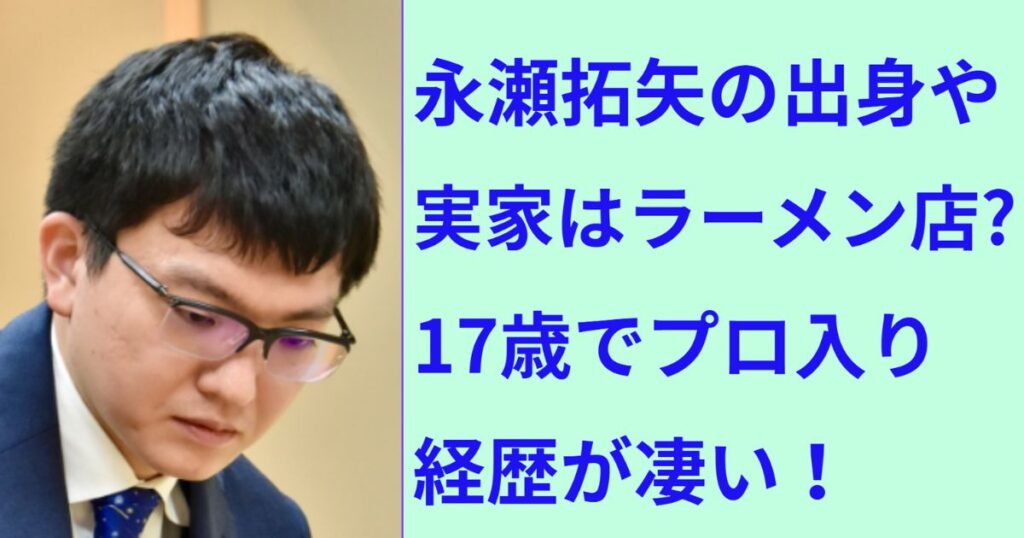 永瀬拓矢九段の出身や実家はラーメン店?17歳でプロ入りした経歴が凄い!