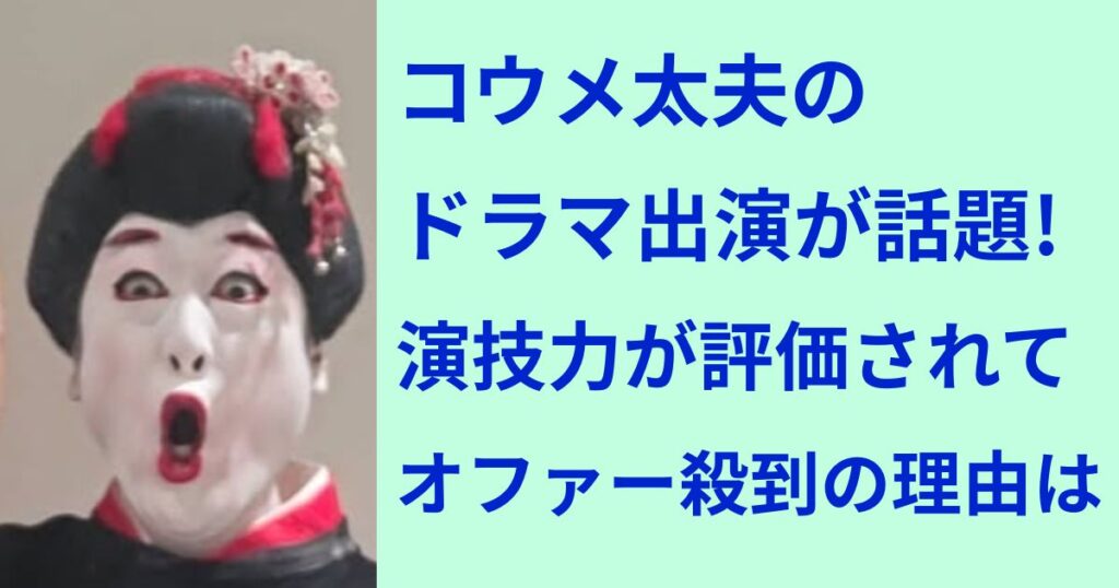 「チクショー!」のフレーズで一世を風靡したお笑い芸人のコウメ太夫さん。 そんなコウメ太夫さんですが、近年はドラマ出演が増え、俳優としての評価も高まっているようです。 演技力が認められてオファーが殺到しているという噂は本当なのでしょうか。 今... -